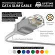Cat.6 Slim Line Ethernet cable is the solution to reduce congestion in high-density Cat.6 Network environments, such as data centers telecommunication and server rooms. With the Cat.6 Slim Line you can fit more cables in the same space, cable diameter is almost half a standard Cat.6 cable which allows cable bundles to be smaller and allows more air flow to prevent the servers from overheating.